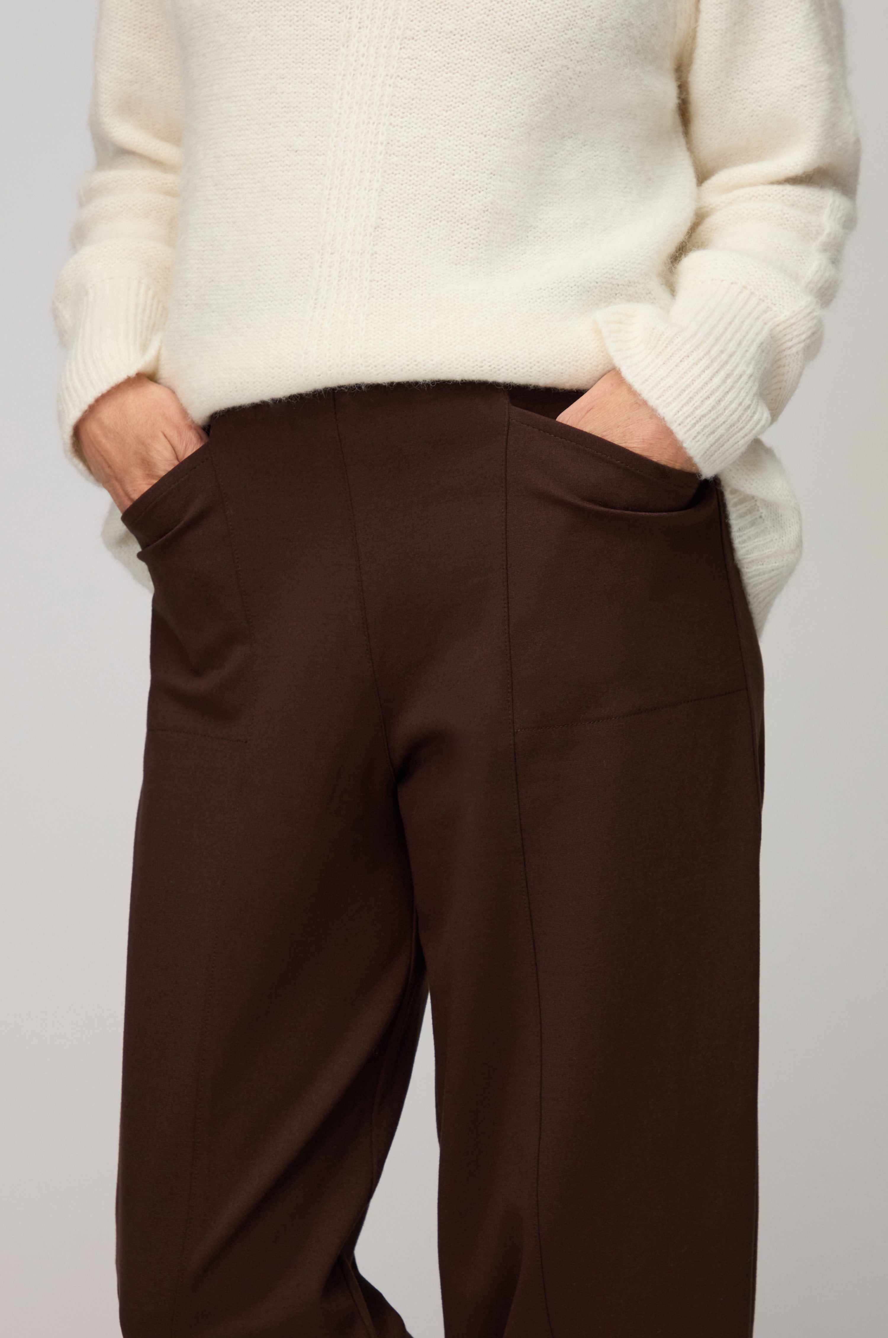 Designed with a sculptural bubble shape through the leg and finished with a cropped hem, this style balances ease and elegance. Perfect for pairing with tunics, shirts, and knitwear, it transitions effortlessly from day to evening.