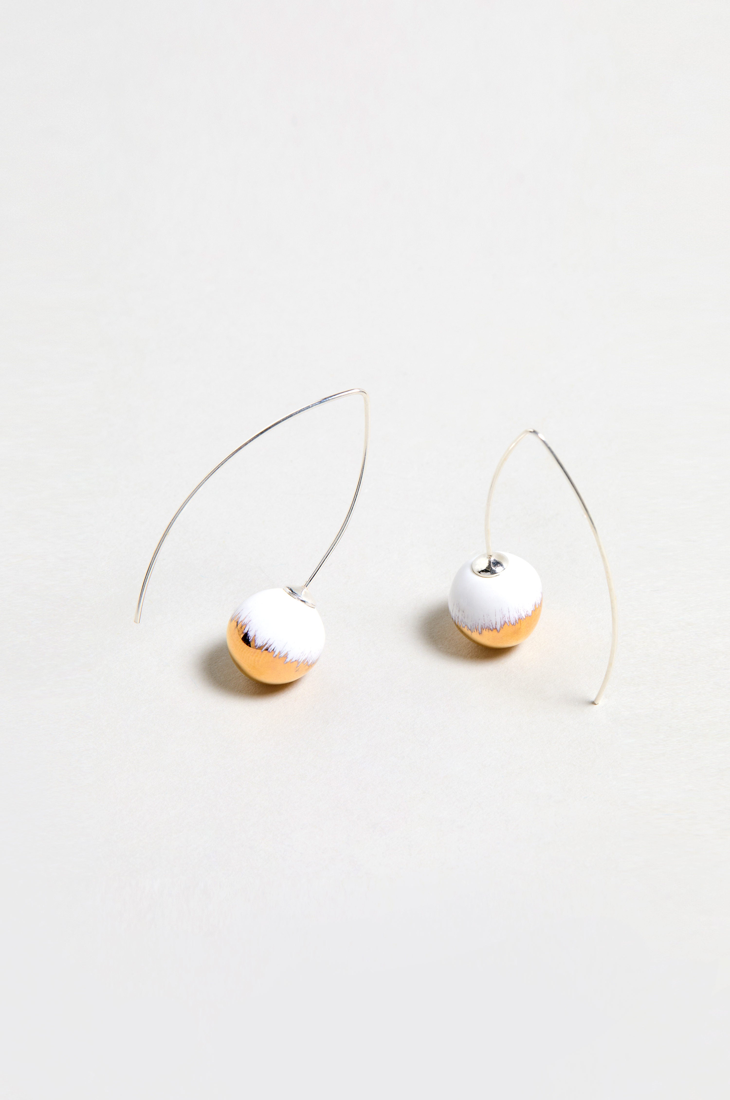 The Gevole Handmade Gold Brushstroke Ceramic Bead Earrings marry architectural modernity with metallic glamour. Hand-painted white ceramic beads meet gold detailing, finished with silver fittings. Designed to add interest without overpowering.