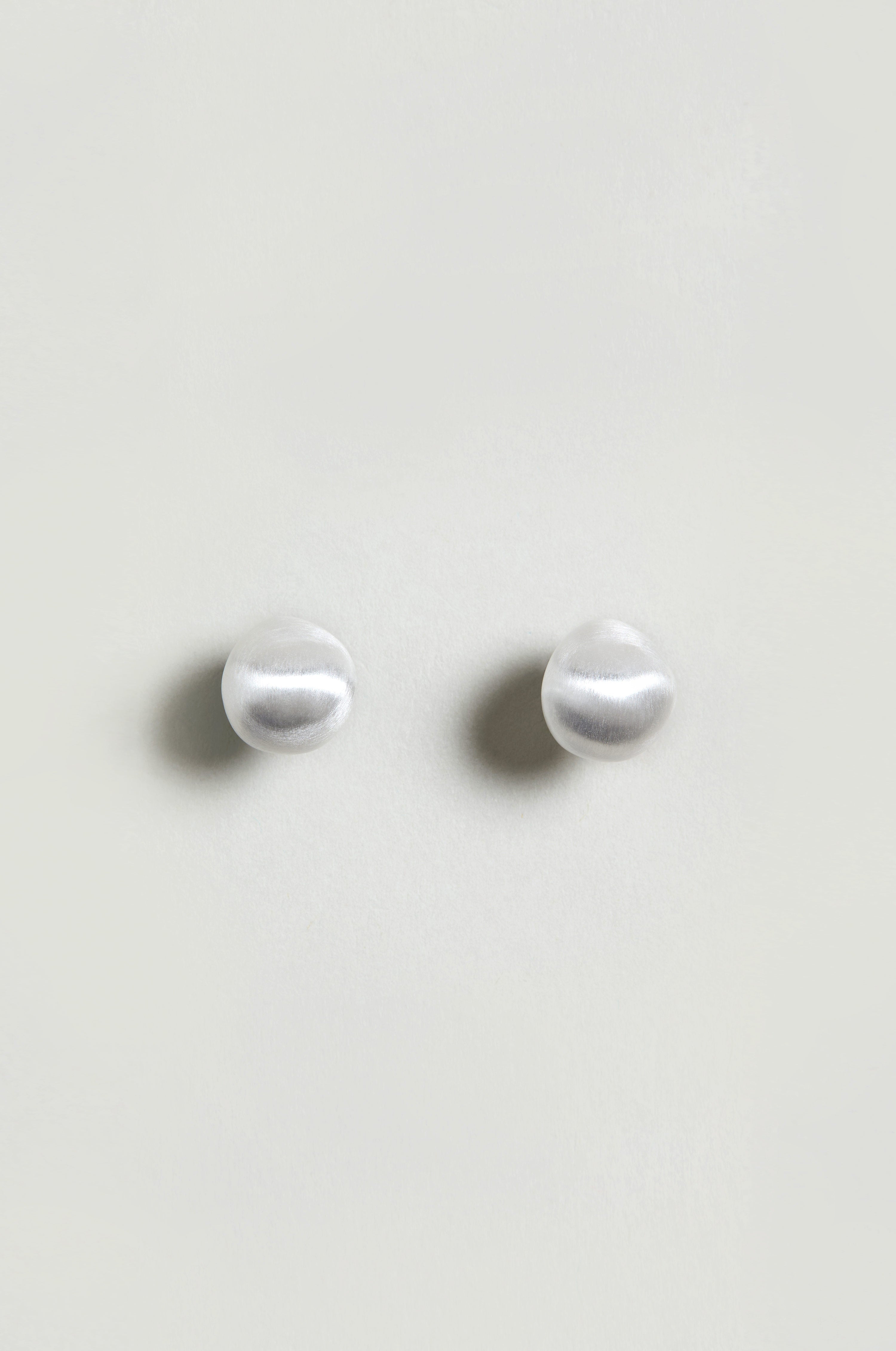 These understated earrings take their cue from naturally smoothed pebbles, reimagined in a softly rounded silver-toned form. The organic silhouette and gently brushed surface give them a crafted, tactile quality that feels modern yet timeless. Subtle and versatile, they add a sleek point of interest without overpowering an outfit.