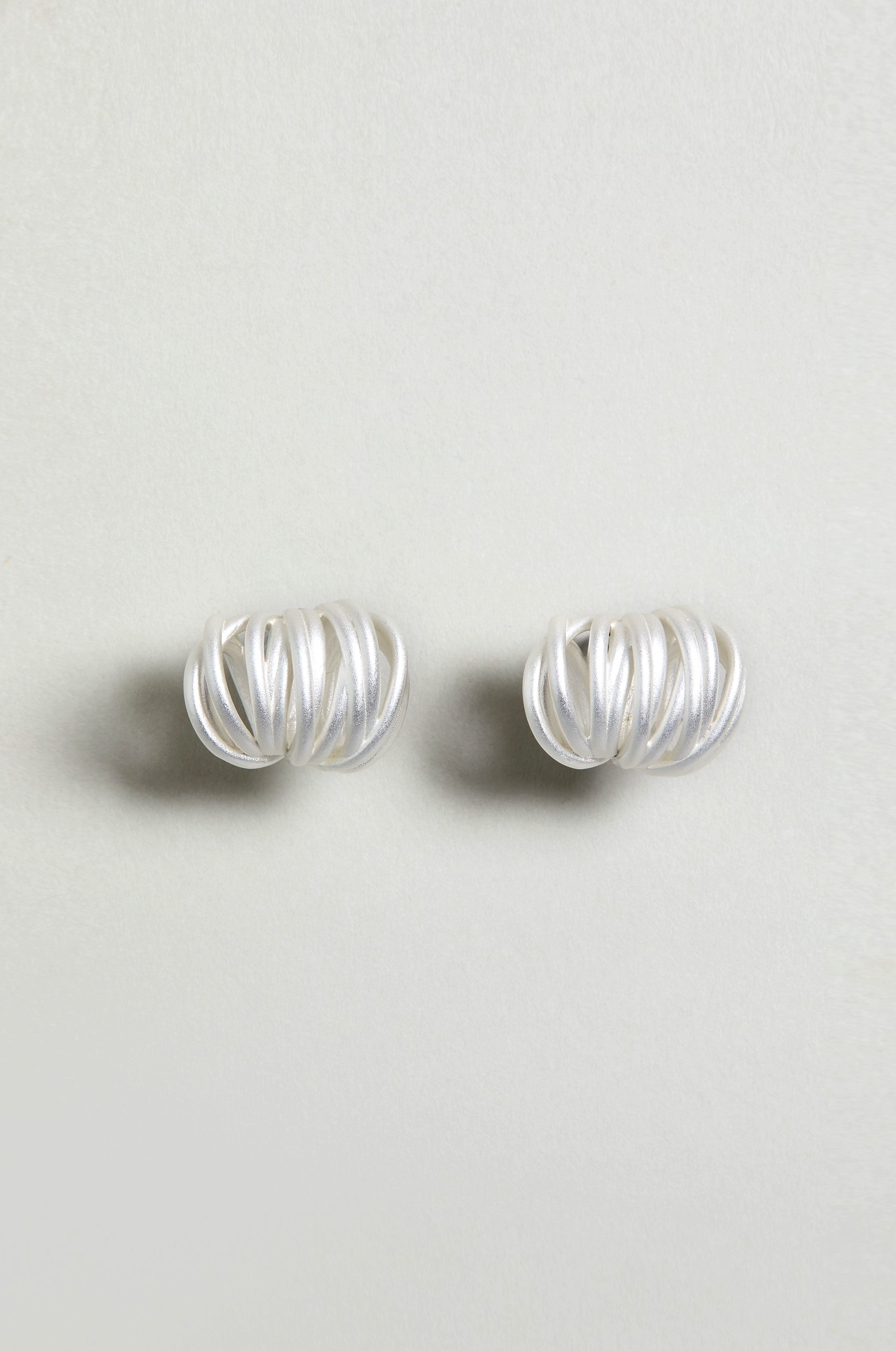 The Sahara Silver Vortex Loop Earrings explore form and movement through interwoven silver loops that create a soft, sculptural swirl. Multiple slender strands twist and overlap, catching the light with a gentle shimmer and an airy sense of depth. Contemporary yet refined, they offer a subtle statement that works across day and evening looks.